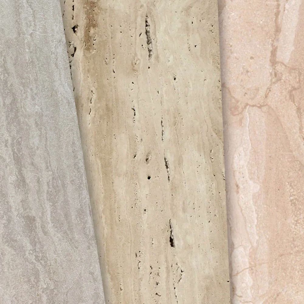 Material: Solid wood base; natural travertine stone surface