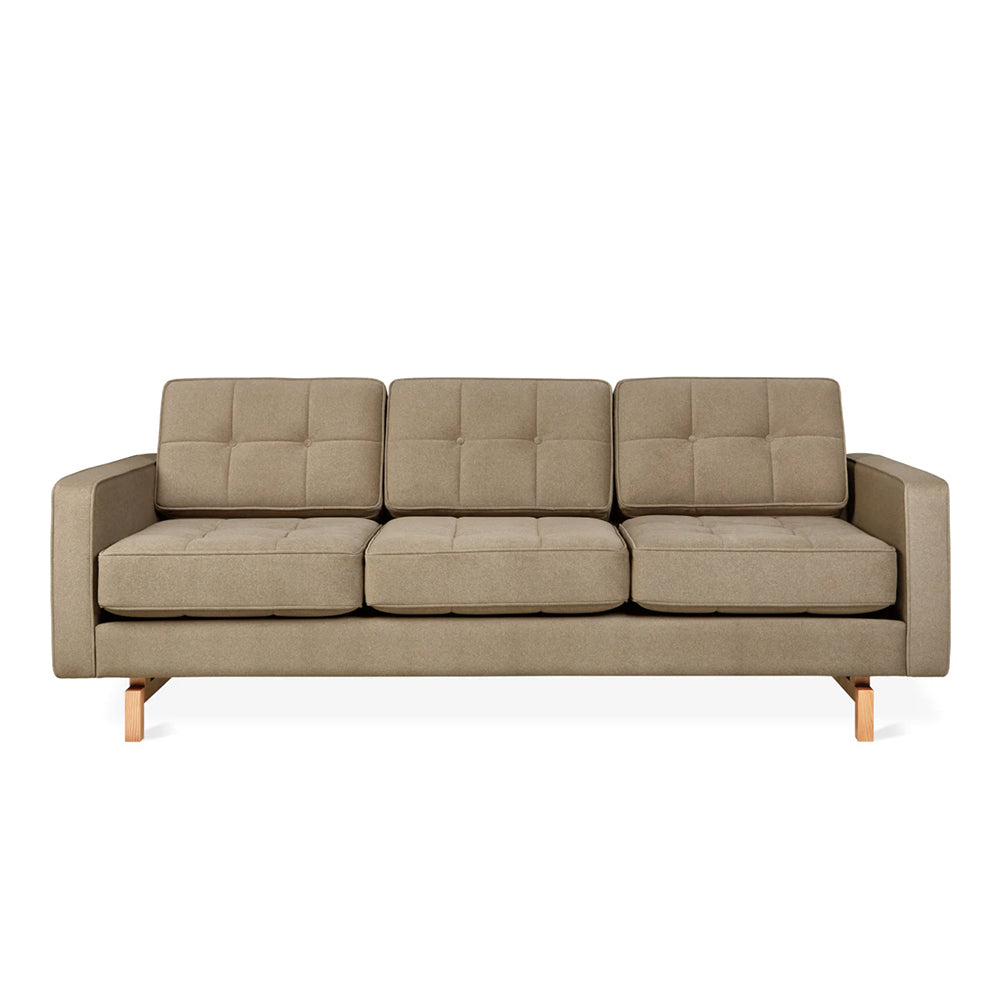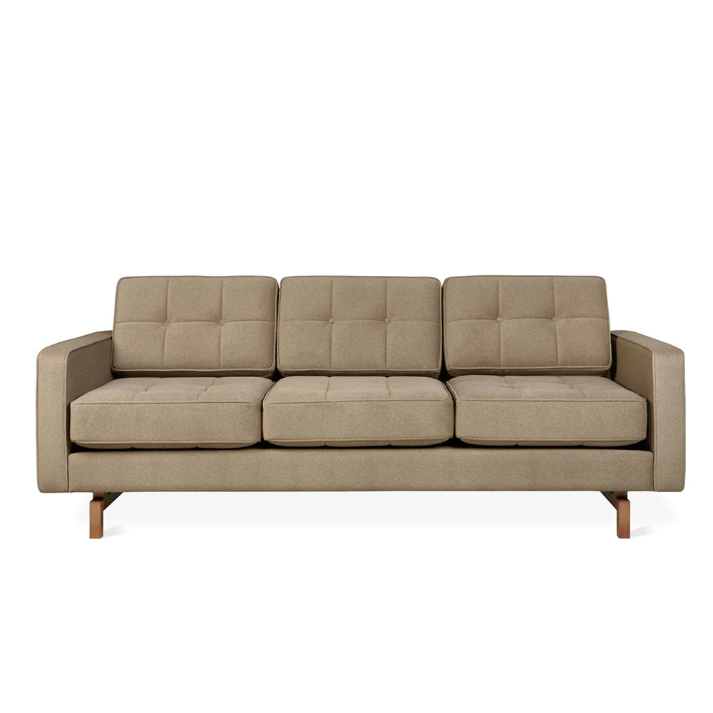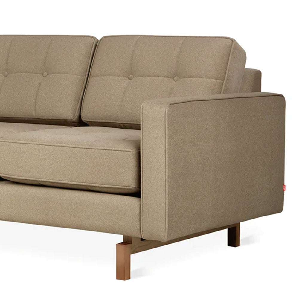 A modern update to the classic Gus* Modern Jane Series, the Jane 2 Sofa retains the iconic, mid-century look while adding contemporary enhancements. Piped upholstery edges and button-tufted cushions create photogenic surface details that are enhanced by Jane 2, new, more refined proportions. A new wood base (available in light or dark wood finish) is inset on each piece, creating a sense of weightlessness that maximizes light and space.